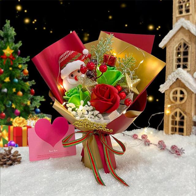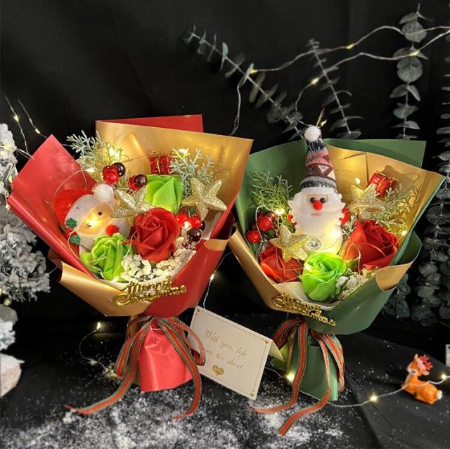 2色展開 クリスマス ソープフラワー ぬいぐるみ ブーケ シャボンフラワー 花束 ギフト ソープフラワー ソープフラワー 枯れない スタンディング ソープフラワー 造花 ブーケ サンタクロース お彼岸 女性 ライト付き