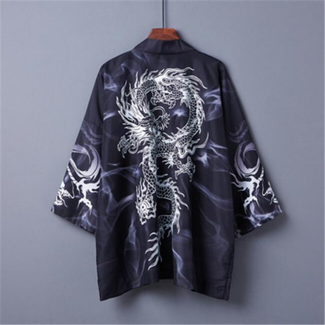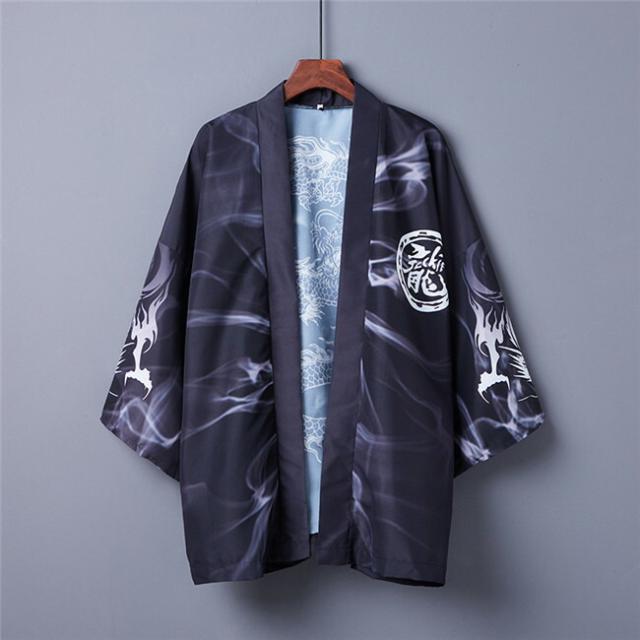 男女兼用 龍柄 夏祭り 夏恋 寺 法被 羽織り 半纏 はんてん 法被 ハッピ 長半纏 半天 袢天 半被 お祭り衣装 雅 和柄 羽織 和装 ユニセックス 浴衣 着物 はっぴスタイル かっこいい かわいい 風物詩 個性的 おしゃれ フリーサイズ ブラック