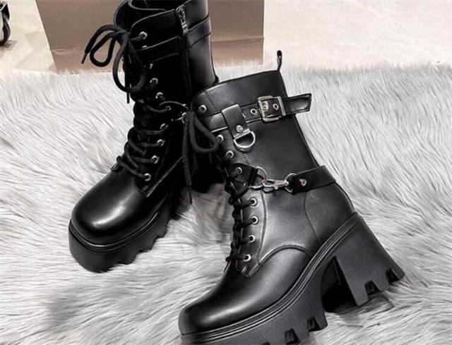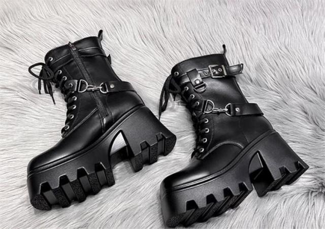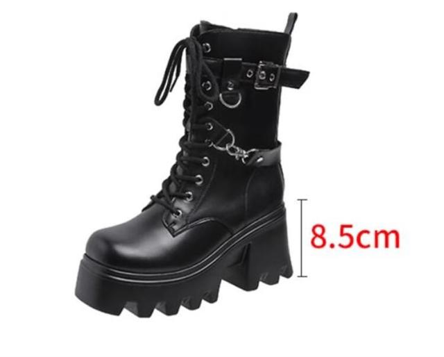 ショートブーツ 8.5cmUP レディース 編み上げ かっこいい 太ヒール レディース レースアップ ショート 厚底ハイヒール ブーツ レディース ブーツ 靴 ショートブーツ 歩きやすい ブラック ローヒール 大きいサイズあり