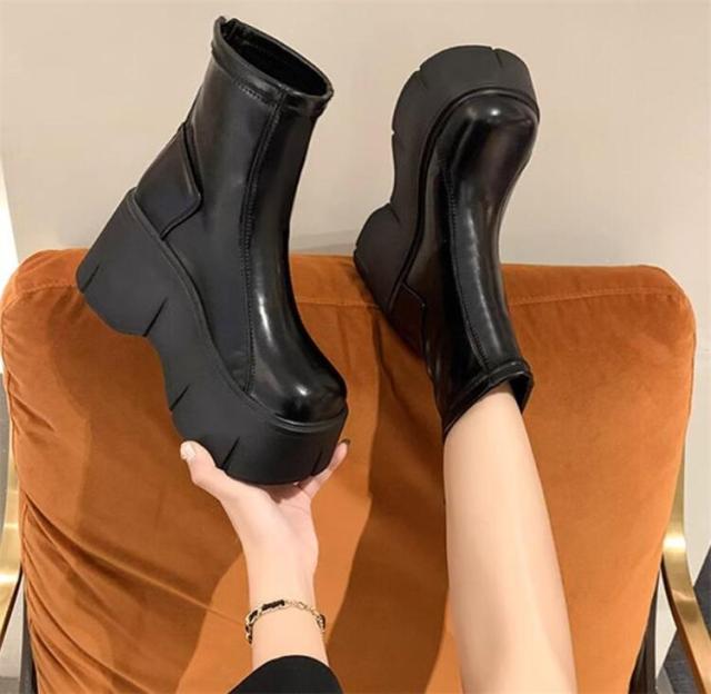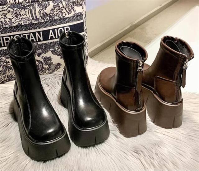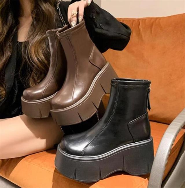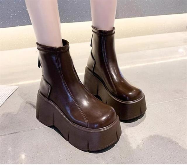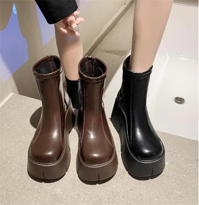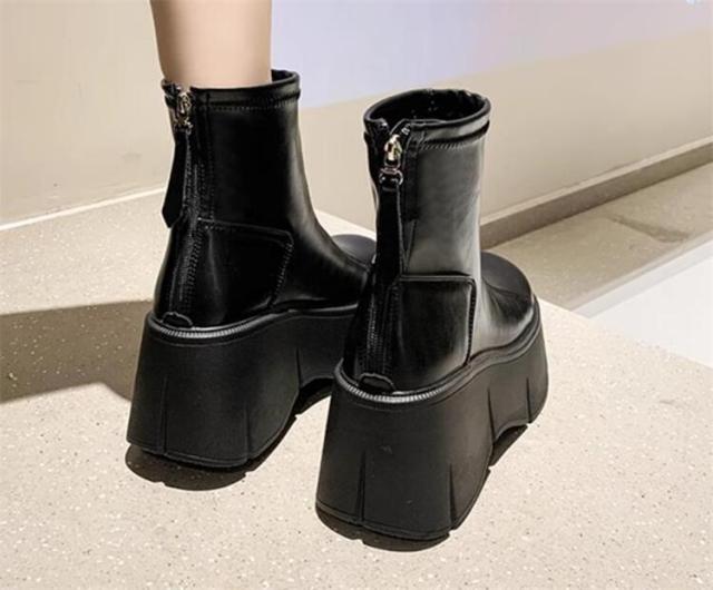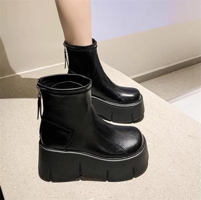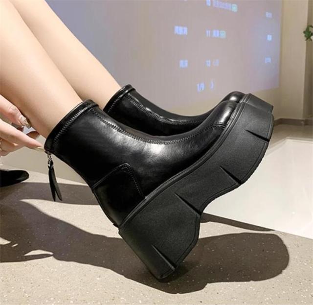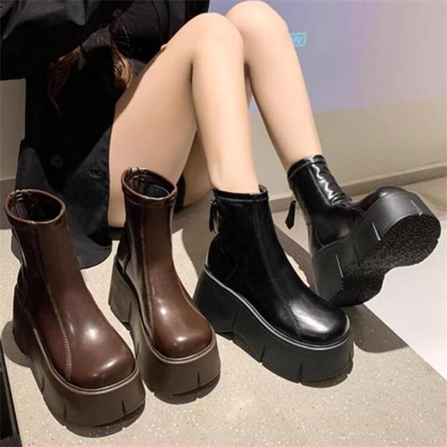 ショートブーツ 7.5cmUP レディース かっこいい 太ヒール レディース レースアップ ショート 厚底ハイヒール ブーツ レディース ブーツ 靴 ショートブーツ 歩きやすい ブラック ローヒール 22.0~24.5cm スクエアトゥ