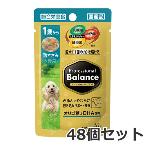 ペットライン プロフェッショナルバランス パウチ 1歳から 成犬用 鶏ささみ&野菜 40g×48個入 総合栄養食 ウエット パウチ