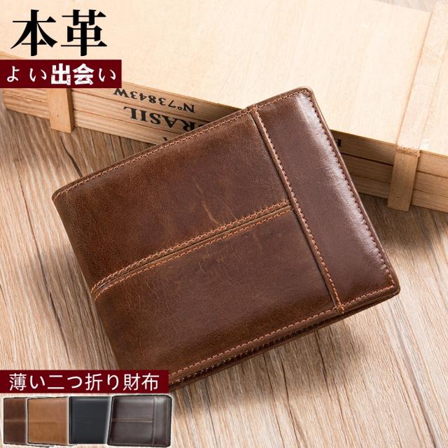 【送料無料】本革財布 ゴートレザー 二つ折り財布 メンズ コンパクト 収納 オススメ 人気 プレゼント
