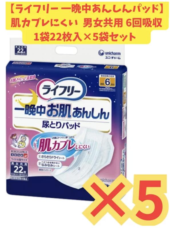 【ケース販売5袋】ライフリー 一晩中お肌あんしん尿とりパッド6回 22枚×5袋セット