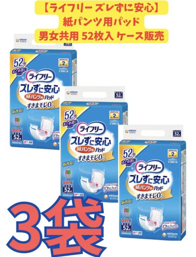 【ケース販売3個セット・送料無料】ライフリー ズレずに安心紙パンツ専用尿とりパッド 52枚