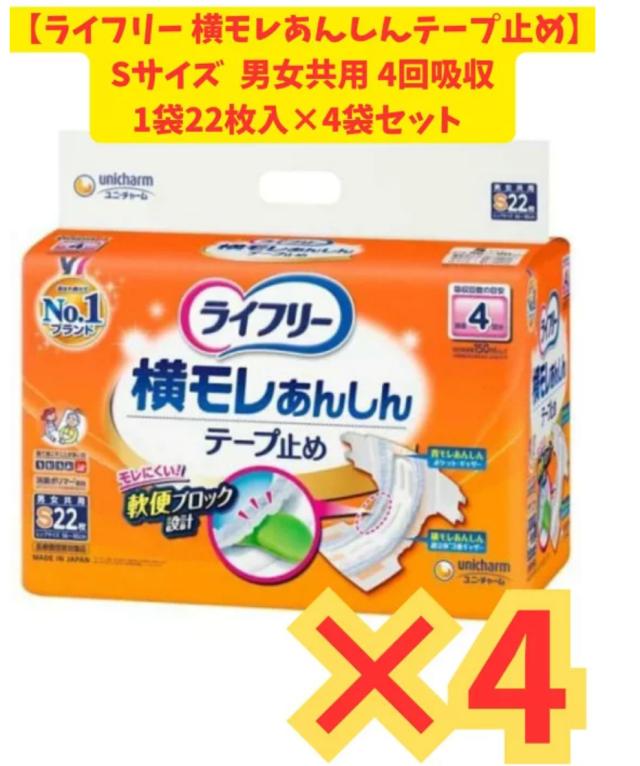 【ケース販売4袋】ライフリー 横モレあんしんテープ止めS 22枚×4袋セット