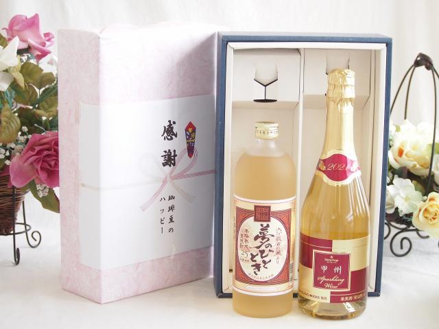 春の贈り物便り 感謝の贈り物ボックス プレミアムな麦焼酎と国産ワインセット(甲州スパークリング 白ワインやや辛口(山梨県)720ml夢のひととき熟成麦焼酎25°(大分県)720ml