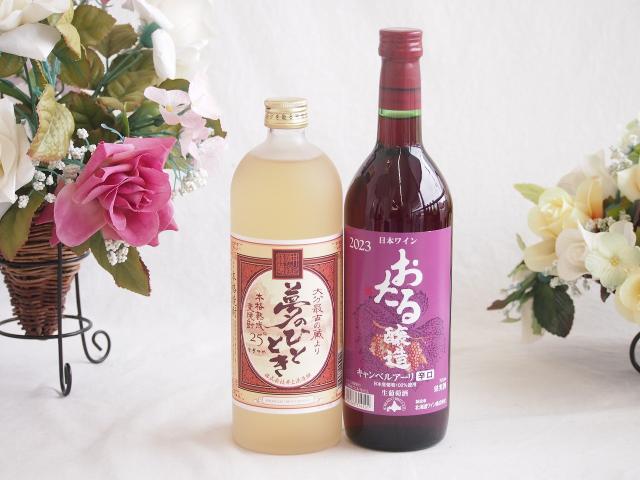 プレミアムな熟成麦焼酎と国産ワインセット夢のひととき熟成麦焼酎25°(大分県)720mlおたる醸造 キャンベルアーリ赤ワイン 辛口(北海道)720ml