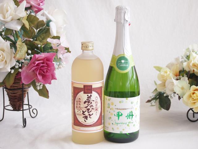 プレミアムな熟成麦焼酎と国産ワインセット夢のひととき熟成麦焼酎25°(大分県)720ml勝沼仕込みの甲州白スパークリングワインやや辛口(山梨県)720ml