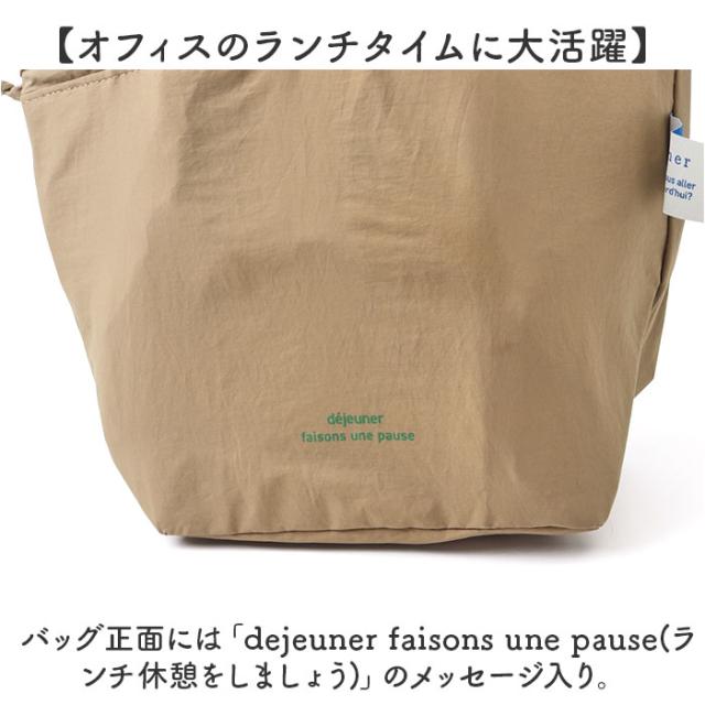 | 商品説明 | 【気軽に持てる、ふんわりフォルム】 ・巾着袋のようなふっくら可愛らしい形がお出掛けスタイルに映える「la flaner ランチバッグ」 【ハンドバッグみたいな可愛らしさ】 ・flaner(フラネ)とはフランス語で散歩の意。ふらりとお散歩したい時に気軽に持てるミニバッグ。 【ランチやカトラリーがすっぽり】 ・くしゃっとソフトな生地感でもマチ幅たっぷり。お弁当箱や箸箱に、サイドケースもすっぽり入る! 【キュッと絞れる巾着タイプ】 ・両サイドのヒモを引っ張って口が絞れる巾着仕様。保冷機能を高めて、食材の新鮮さをキープ。 【美味しさ長持ち・保冷補助機能】 ・内側は保冷効果のあるアルミ蒸着シート仕様。保冷剤を入れて食材の新鮮さをしっかりキープ! 【サッとひと拭きで簡単キレイ】 ・内側のアルミ蒸着シートははっ水性にも優れており、汚れや水滴がサッと拭き取れてお手入れ簡単! 【中身が見えるメッシュポケット】 ・バッグ内側には保冷剤が入るメッシュポケットを装備。コインケースや小物の収納にも便利。 【持ち運びに便利なハンドル付き】 ・巾着紐だけでなく、ちょこんと手提げにできるハンドル付きなので、通勤・通学用にもオススメ。 【水滴を弾くはっ水加工生地】 ・表生地には水滴や汚れを弾くはっ水加工ナイロンを採用。雨の日のお出掛けやアウトドアでも安心。 【オフィスのランチタイムに大活躍】 ・バッグ正面には「dejeuner faisons une pause(ランチ休憩をしましょう)」のメッセージ入り。 【細部までこだわったデザイン】 ・バッグのサイドでひらりと翻る、「la flaner」のロゴが映えるリボン風の織ネームがワンポイント。 【ランチが華やぐシンプルカラー】 ・スタイルを選ばないベーシックカラーに、差し色になるビビッドカラーまで豊富にラインナップ。 |