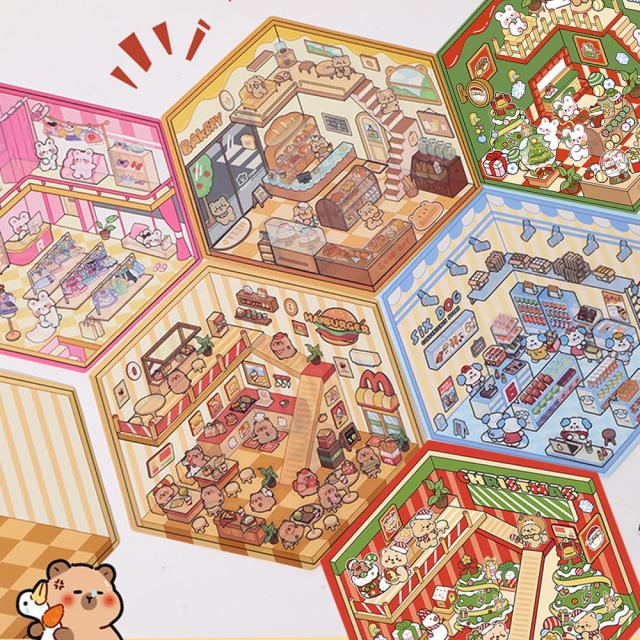 3D ハウスステッカー シーンシール 造景シール シール 紙 ドールハウス クリスマス おしゃれ 手帳デコ素材シール ストレス解消 おもしろ グッズ 立体 ミニチュアハウス 初心者