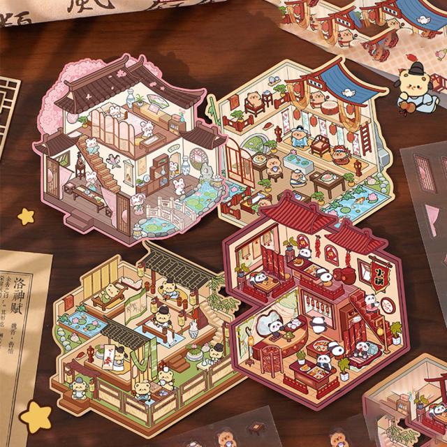 3D ミニチュア キット シーンシール 造景シール DIY シール 可愛い 立体 ステッカー 手帳 コラージュ 素材 ストレス解消 紙 ドールハウス おもちゃ ハウスステッカー 漫画ステッカー