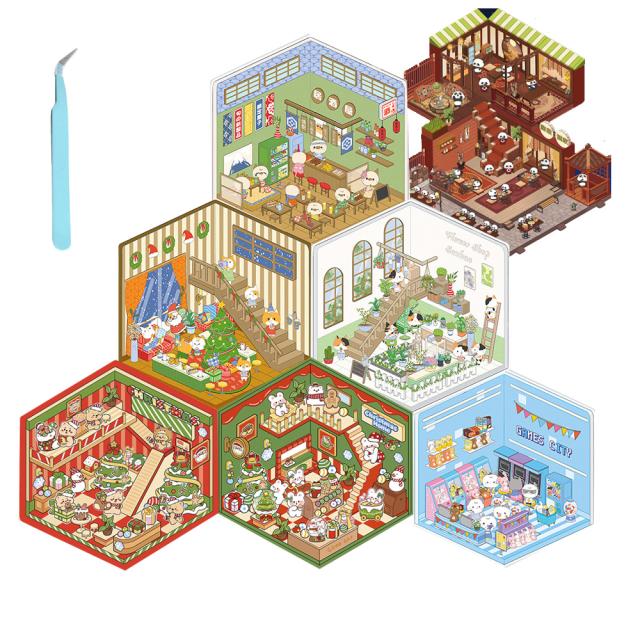 造景 シール ステッカー おもしろ 手帳 シール 3D 立体 可愛い セット シーンシール ノート シール diy 紙ミニチュア 初心者 紙ドールハウス おもちゃ 手作りキット ストレス解消