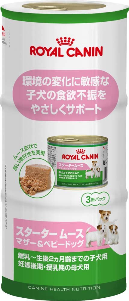 【製品特長】●環境の変化に敏感な子犬の食欲不振をやさしくサポート。●ロイヤルカナンのドライフードと一緒に与えても、子犬/妊娠~授乳期の母犬に最適な栄養バランスを満たすように設計されています。●特別な栄養素を必要とする妊娠後期・授乳期の母犬と離乳から固形食にうつる生後2ヵ月齢までの子犬のために開発された総合栄養食です。●ムースタイプで嗜好性も高く、離乳期の子犬の固形食へのスムースな切り替えをサポートします。 ■更新日時:2020/02/28 14:04:32