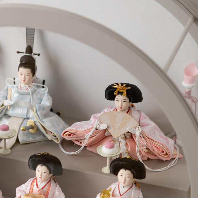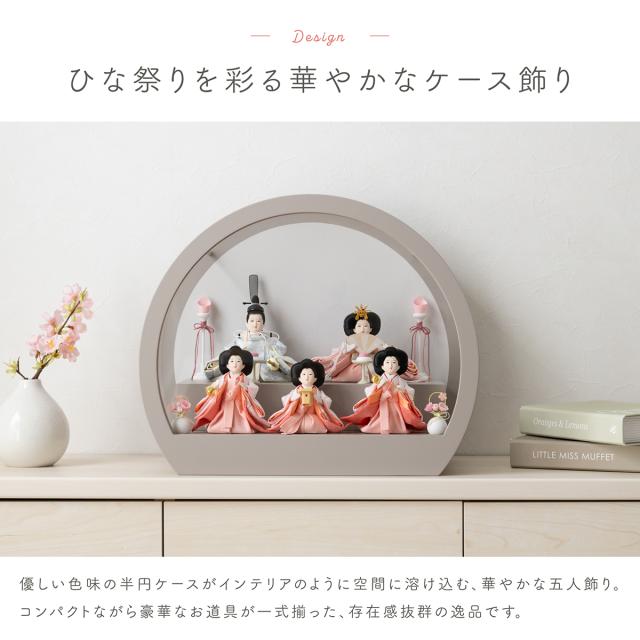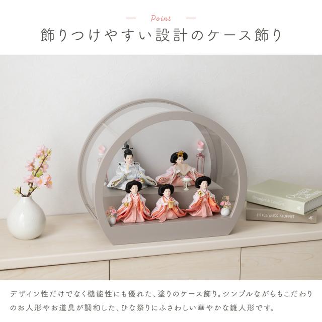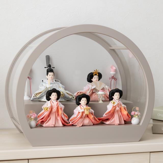 雛人形 コンパクト ケース飾り ふるうる はなのうた 五人飾り 丸型ケースL モカ 無地 sonoca そのか 2026年度版 雛 おひな様 最新 今どき おしゃれ モダン お雛様 インテリア