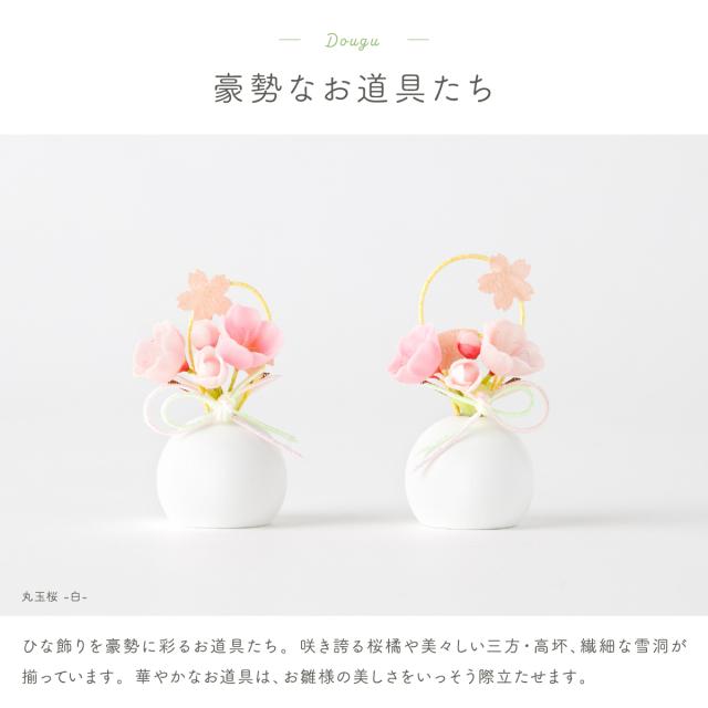 例)色ムラ・細かい生地のほつれ・お道具のお花の黒い点、細かな穴・パーツの接着部分の糊のはみ出し・三方の花瓶口の縁部分の塗装・桜橘の木部の微細な欠けやささくれ