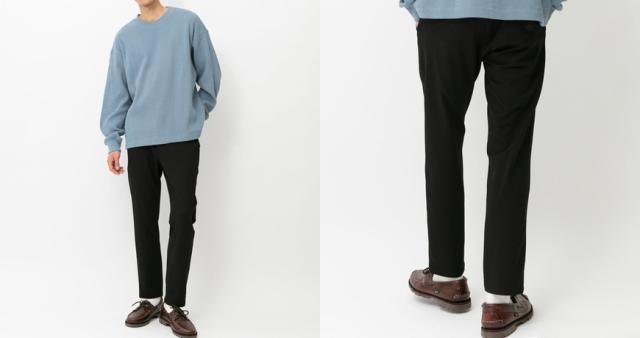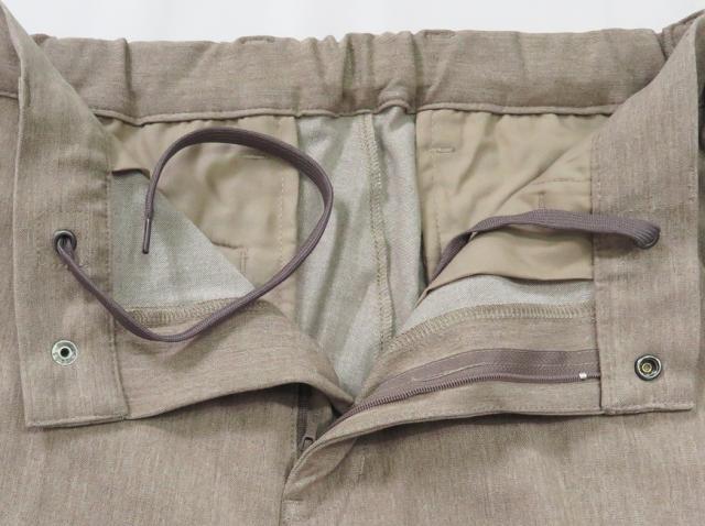 尾州で生産された生地、温度調節機能でイージーケアが特徴の「アウトファースト」を使用したワンタックイージーパンツ。