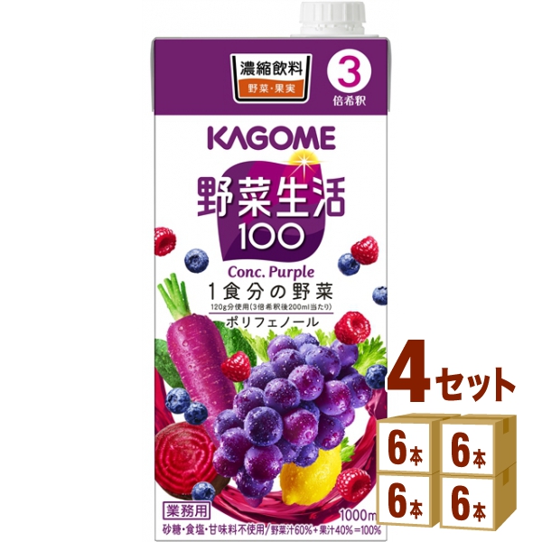 カゴメ 野菜生活100パープル(3倍濃縮) 1000ml×6本×4ケース (24本) 飲料