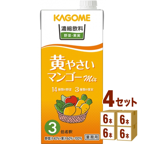 カゴメ 濃縮飲料 黄やさい・マンゴーミックス(3倍濃縮)1000ml×6本×4ケース (24本) 飲料