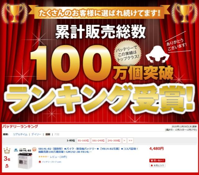 SB14L-B2(シールド型)■バイク・除雪機バッテリー■【YB14-B2互換】■コスパ最強!総販売数100万個突破!GM14Z-3B FB14L-B2互換■【100%交換保証】スーパーナット ヤマハ(液入済)