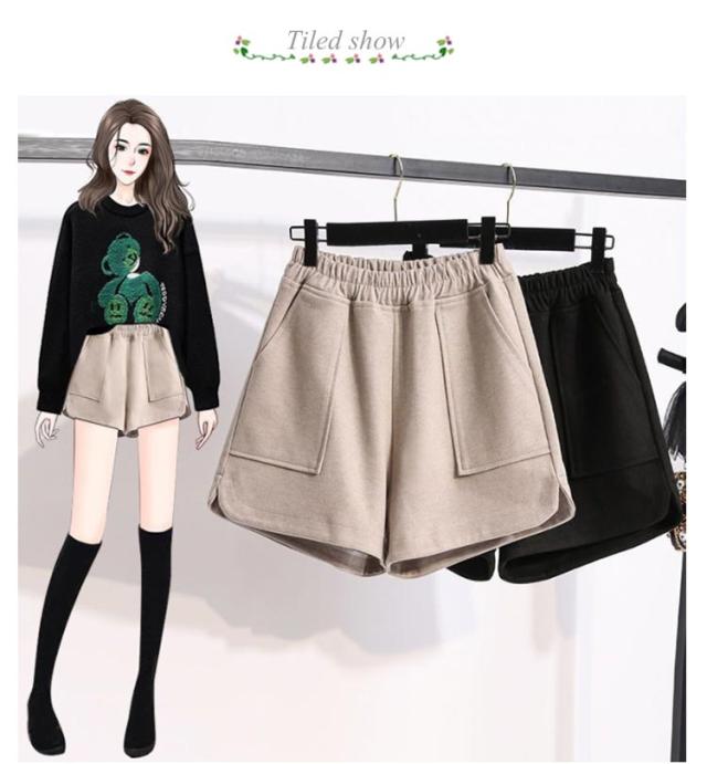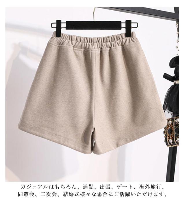 ショートパンツ 短パン 厚手 レディース 秋冬 ワイドパンツ Aライン きれいめ ボトムス 暖かい 3分丈 ワイドショートパンツ 大きいサイズ 美脚 おしゃれ ウエストゴム シンプル 大人 30代 40代 50代 無地