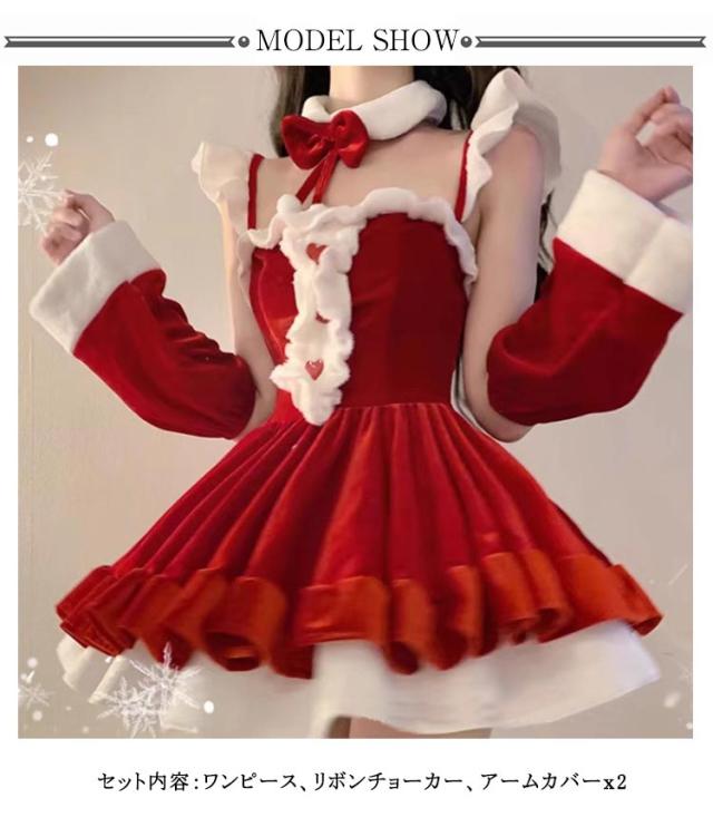 サンタ コスプレ ワンピース 4点セット レディース クリスマス サンタ 衣装 サンタクロース コスプレ ドレス リボンチョーカー アームカバー コスチューム 衣装 仮装 イベント サンタコス 赤 クリスマスコスプレ 可愛い セクシー パーティ 学園祭 送料無料