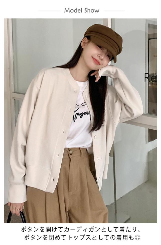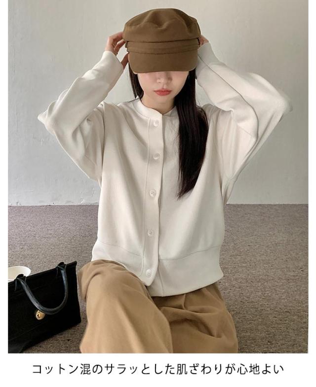 カーディガン スウェットカーディガン ノーカラー レディース スウェット トップス スウェットカーディガン スウェットトップス トレーナー 長袖 アウター 羽織り 春服 秋服