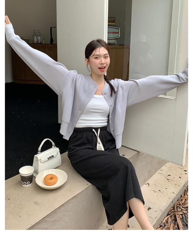 | ボリュームスリーブのスウェットカーディガン。 コットン混のサラッとした肌ざわりが心地よい。 ボタンを開けてカーディガンとして着たり、ボタンを閉めてトップスとしての着用も◎ 肩まわりはドロップショルダーでゆったりと。 ボトムスも問わず、抜け感のあるコーデが楽しめるitemです。 | |