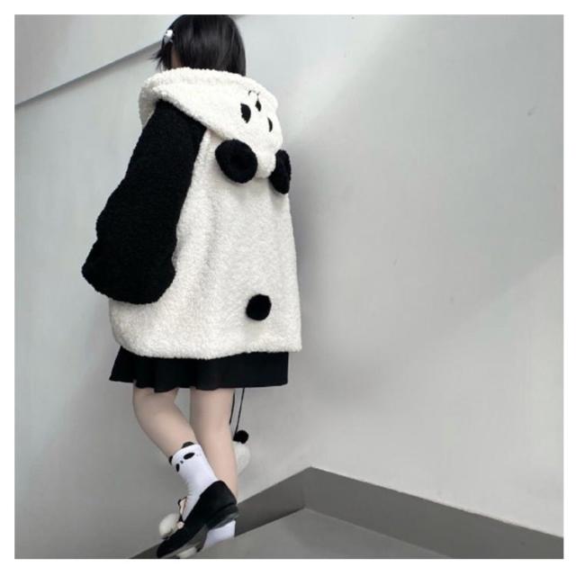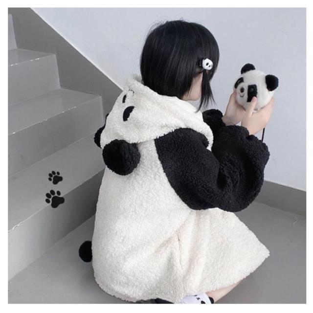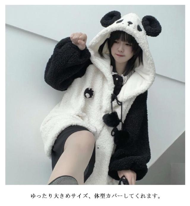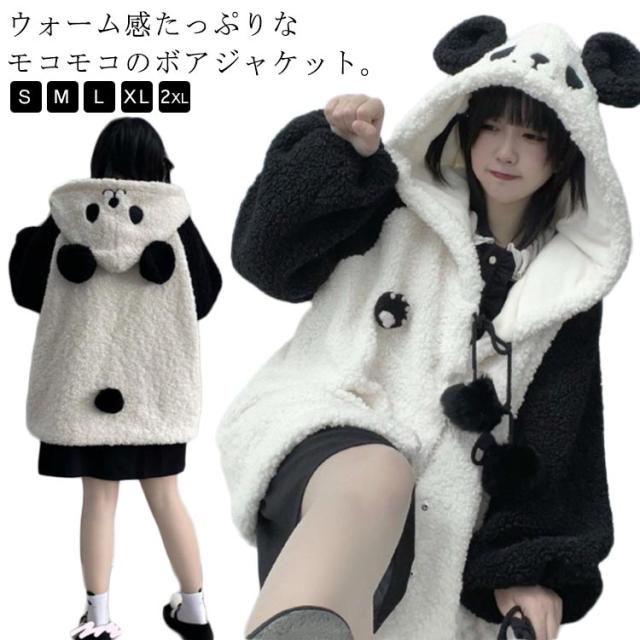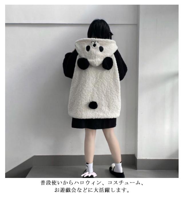 ハロウィン ボアコート パンダ レディース パーカー アウター 裏起毛 ジャンパー もこもこ ふわふわ ボアパーカー フード付き 冬服 防寒 あったか カジュアル ゆったり 可愛い 中学生 高校生 秋冬 仮装 送料無料