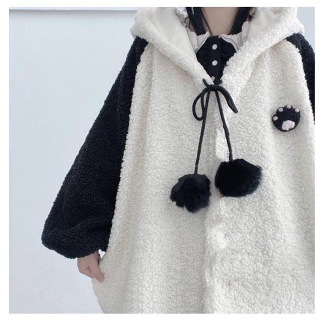 | ウォーム感たっぷりなモコモコのボアジャケット。 ふんわりもこもことした生地でやわらかい雰囲気が季節感を漂わせてくれる1枚です。 立体感のあるパンダ風フード付き、萌えて可愛い。 ゆったり大きめサイズ、体型カバーしてくれます。 普段使いからハロウィン、コスチューム、お遊戯会などに大活躍します。 | |