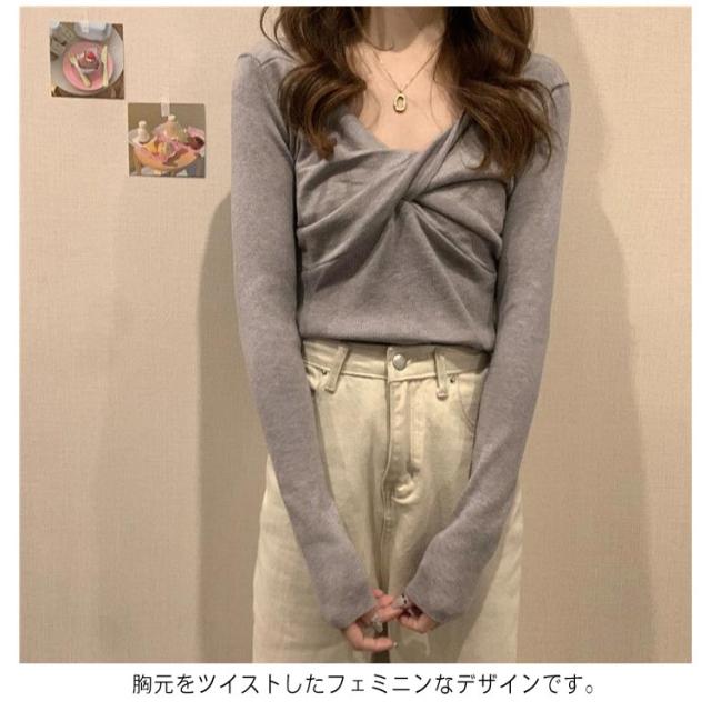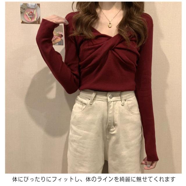 | 胸元のひねりデザインが特徴的でとっても洒落なニットトップス 体にぴったりにフィットし、体のラインを綺麗に魅せてくれます 胸元をツイストしたフェミニンなデザインです。 少し肌が見える部分がとても女性らしい雰囲気を出しています。 ざっくりと開いたネックでデコルテをすっきりと見せ、大人っぽいシルエットを演出します。 シンプルなデザインで合わせるアイテムを選ばず、コーデのバランスが取りやすい1枚です。 | |