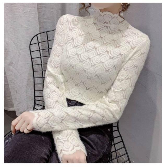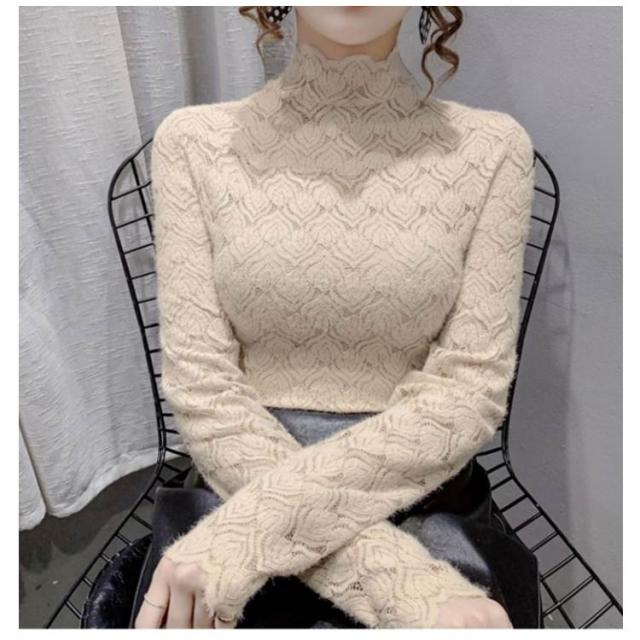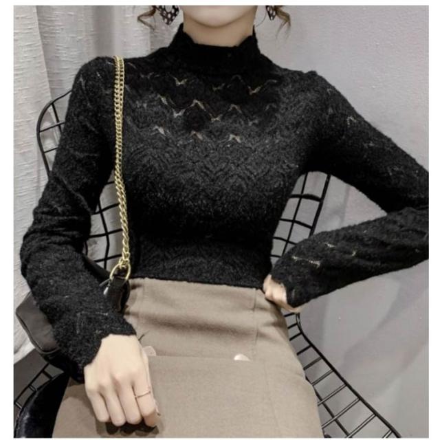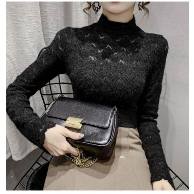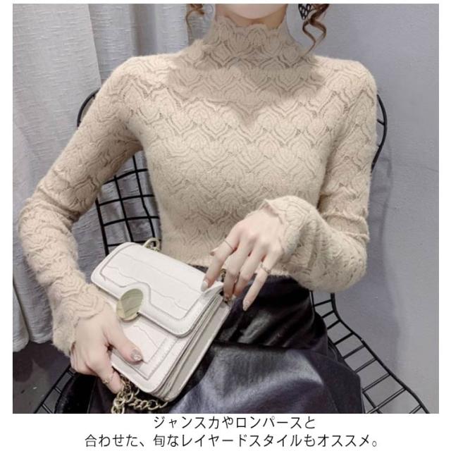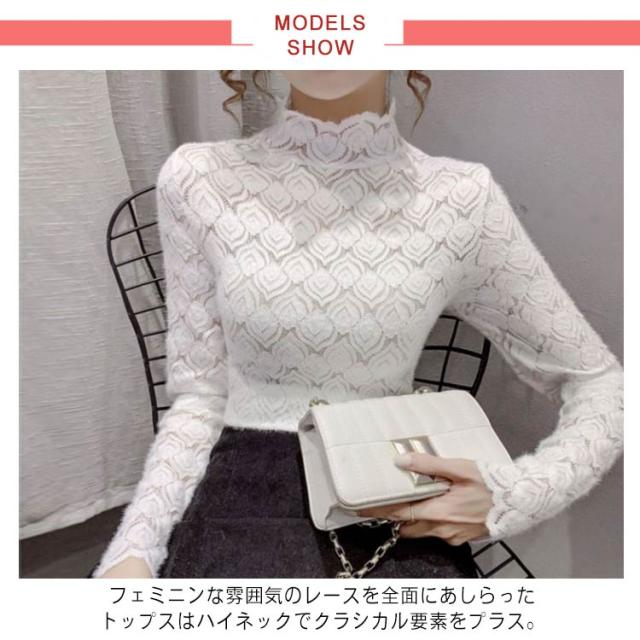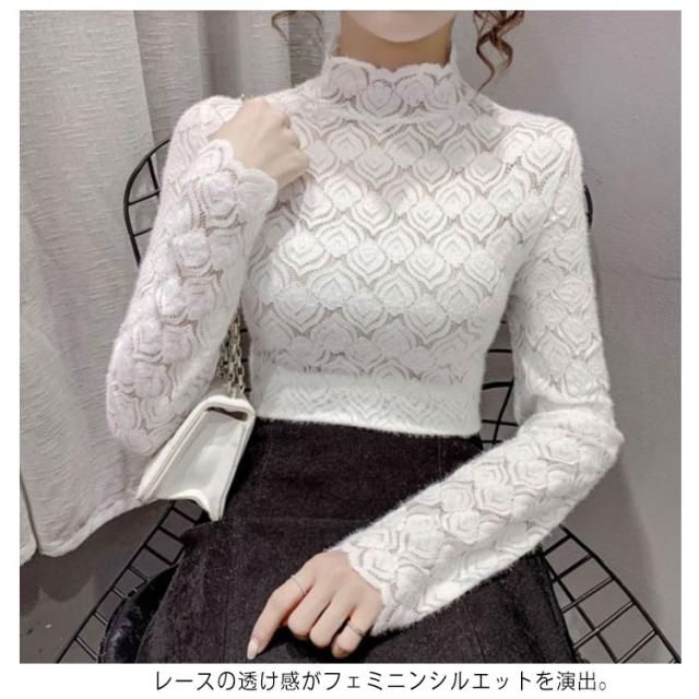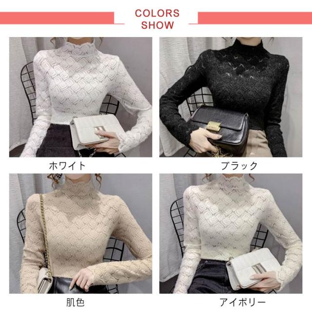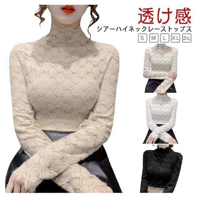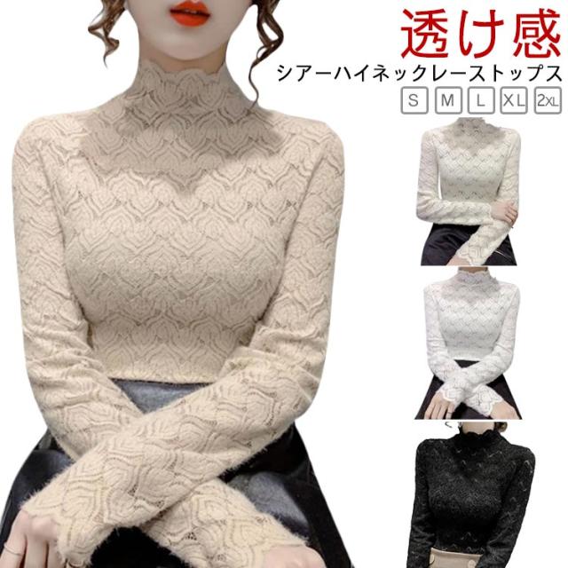カットソー レーストップス フォーマル ハイネック シア—トップス シースルー ハイネック きれいめ 総レース 透け感 スリム 細身 長袖 レース レイヤード 重ね着 かわいい ビジネス オフィス 花柄 トップス 大人女性 大きいサイズ