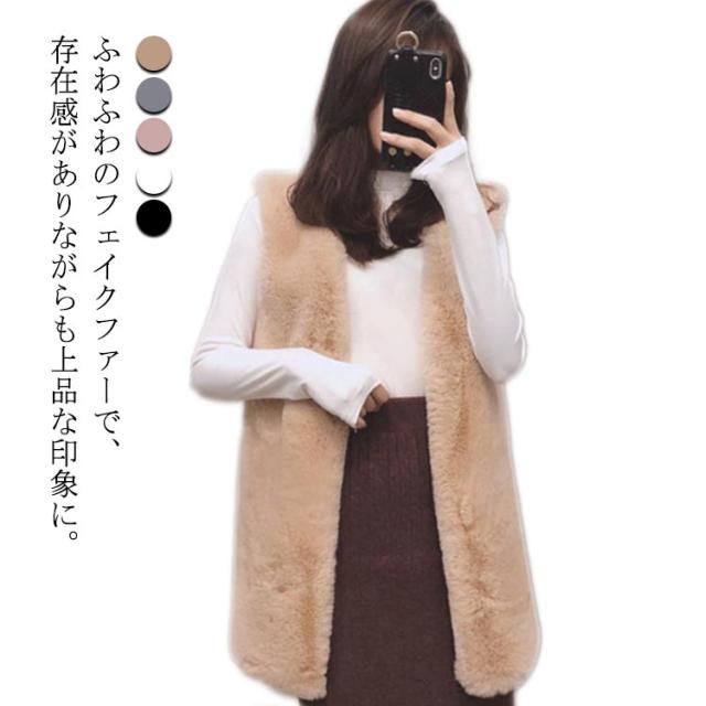 秋冬 ノーカラー ファー コート ファーベスト ファーベスト 羽織り 秋 冬 ボアベスト ジレ レディース アウター フェイクファー ベスト ロングベスト ロング羽織り 前開き もこもこ トップス ノースリーブ ベスト ボリューム 黒 ホワイト ピンク ブラック グレー
