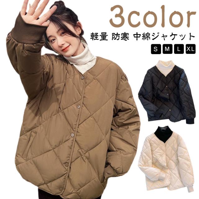 上着 キルティング コート 羽織り アウター 冬 長袖 無地 秋 ジャケット レディース 中綿ジャケット 大きいサイズ ショート丈 ノーカラー 軽量 中綿 キルト ショートコート キルティングジャケット コート 防寒 おしゃれ
