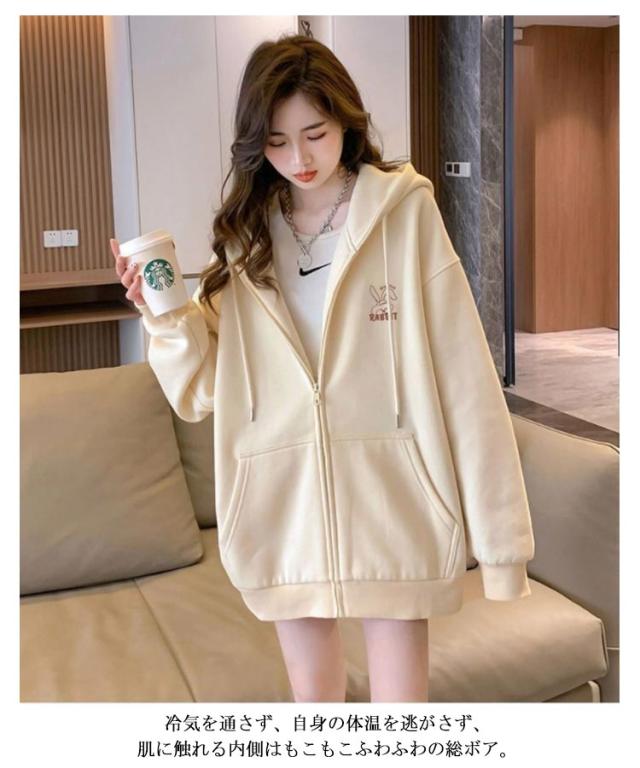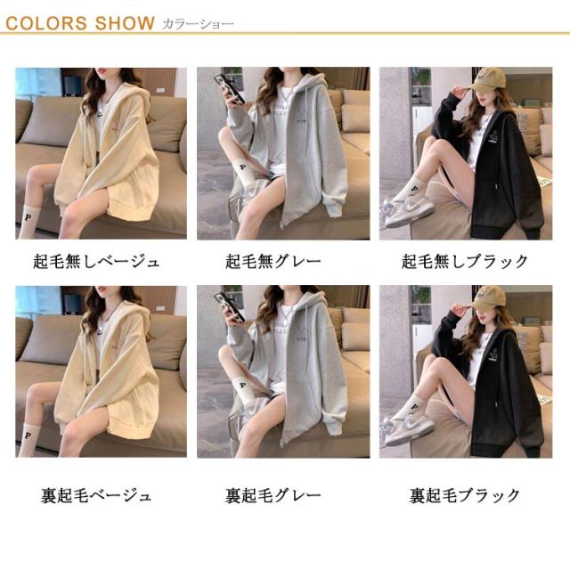 ジップアップパーカー フード 長袖 レディース 冬 秋 可愛い パーカー ジップパーカー 裏起毛パーカー レディースパーカー 秋 ベージュ グレー ブラック 黒