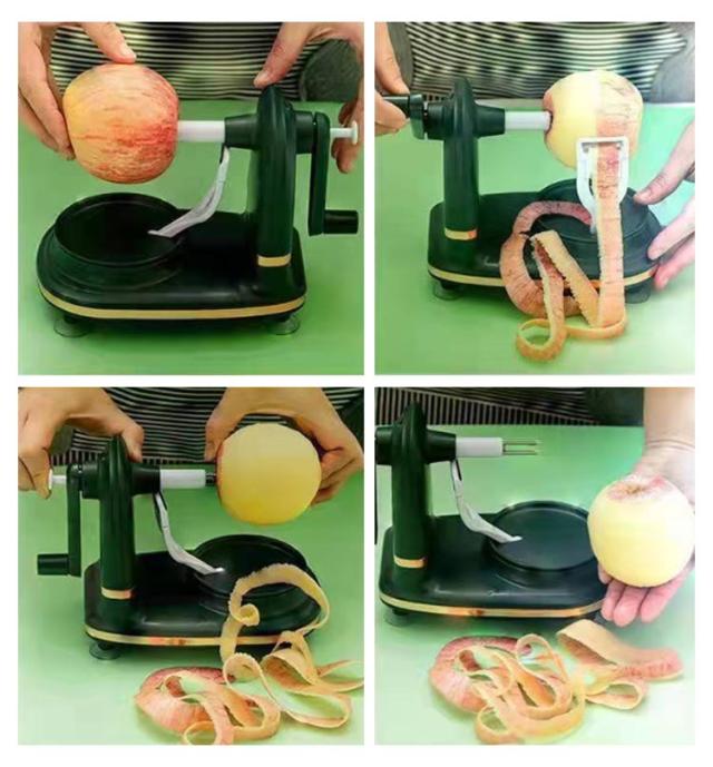 | りんごの皮むきがあっという間にラクラク! ハンドルを回すだけで、素早く皮がむけるアップルピーラーです。 りんごや梨の皮むきが簡単にできます。 包丁でむくより、安全性が高くキレイに仕上がります。 | |