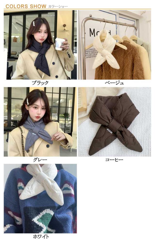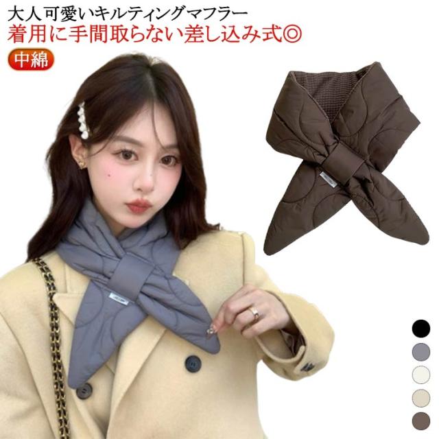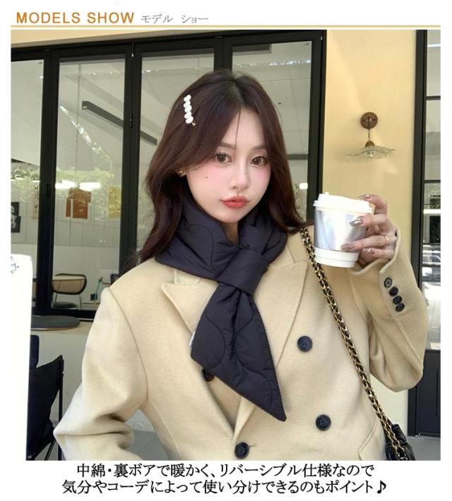 リバーシブル マフラー 秋 中綿 裏起毛 レディース キルティングマフラー キルティング キルティング 差し込み ボア キルト 暖かい 差し込み式マフラー 冬 おしゃれ きれいめ 韓国 ブラック ベージュ グレー コーヒー ホワイト
