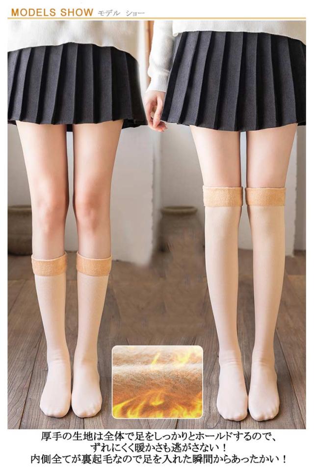 | タイツのようなさらりとした表にあったかい起毛の裏地がついたレディースソックス4足入り。 厚手の生地は全体で足をしっかりとホールドするので、ずれにくく暖かさも逃がさない!内側全てが裏起毛なので足を入れた瞬間からあったかい! 通勤・通学にも使えるストッキングタイプ、膝上までしっかり包み込みニーハイソックスタイプから選んでいただけます。 カラーもブラックとベージュの2色をご用意しました。足元から暖かく大人ロングソックスアイテムです。 ミニスカートとのコーデがぴったり。足長効果もあって履き心地も抜群です。 伸縮性に優れているので楽に着用いただけます!これからの季節に大活躍に間違いない! | |