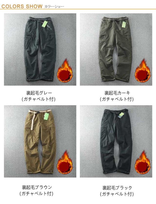 | 裏起毛と起毛無しの2タイプ! 肌触りの良いフリース素材を裏地に使用したメンズカーゴパンツ。 ガチャベルト付き、存在感のある旬なルーズシルエットが魅力のデザイン。 前開き&ウエストゴム仕様なので着脱簡単♪ ジッパーポケット、ヒップポケット、フラップポケットつき。 はっ水加工されたパンツなので冬のアウトドア、屋外作業におススメ! どんなトップスでも合わせやすいアイテムに仕上げました。 | |