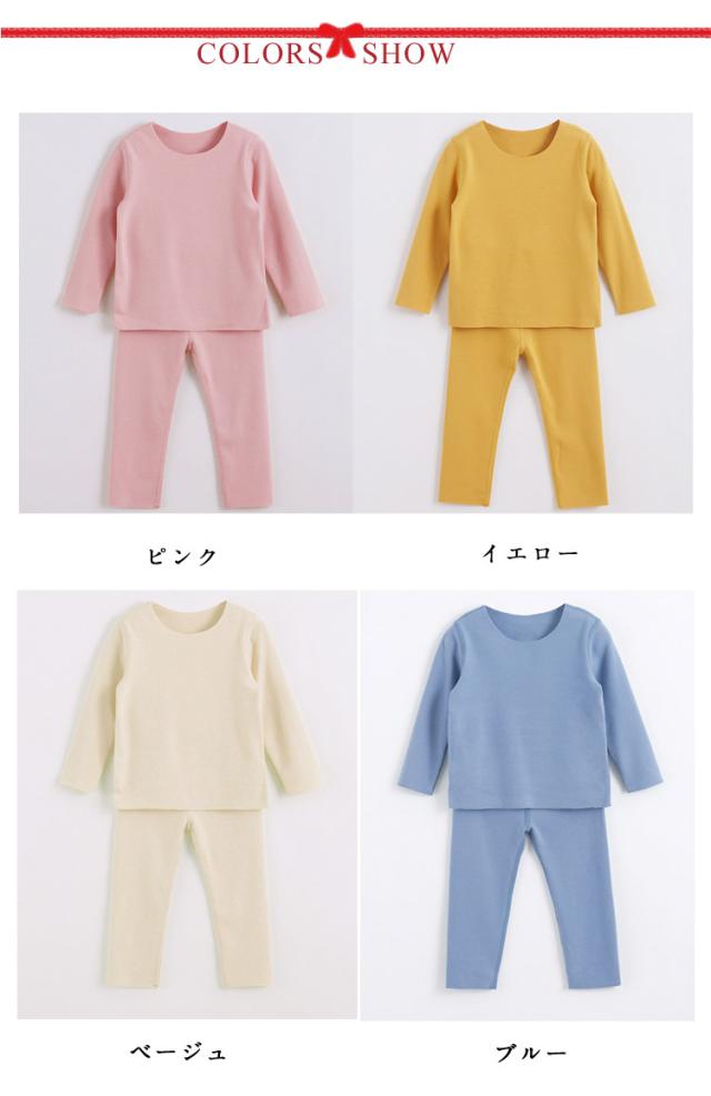 | 裏起毛 お腹が出にくい長袖パジャマ 50-100cm 裏面に肌触りの良い起毛素材を採用。 優れた接触温感性を発揮する。 | |
