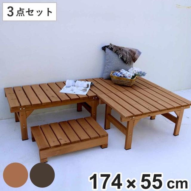 ユニット縁台ベンチ hiyori 連結3点セット 幅174×奥行55cm ( ガーデンデッキ ベンチ 木製 屋外 ウッドデッキ ウッドベンチ 庭 バルコニー 縁台 天然木 杉 庭先 ぬれ縁 踏み台 掃き出し窓 連結 ウッド デッキ おしゃれ )