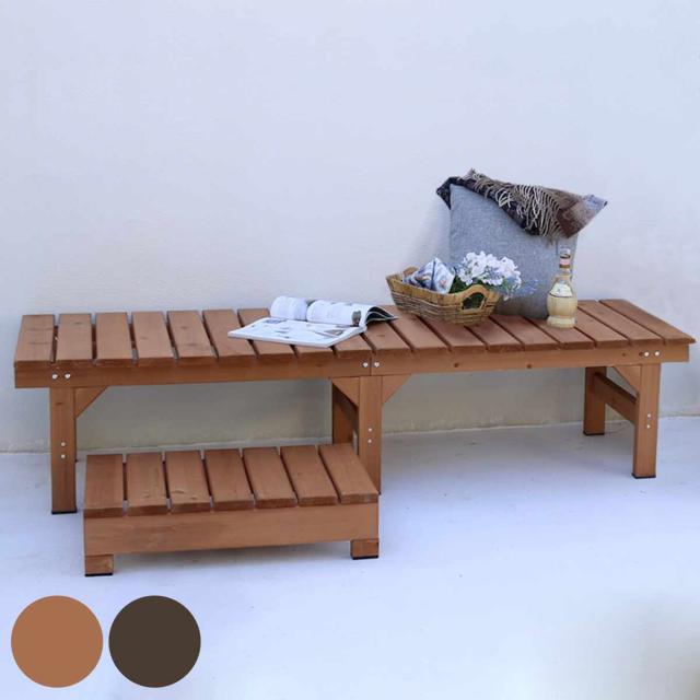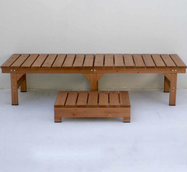 ユニット縁台ベンチ hiyori ステップセット 幅174×奥行55cm ( ガーデンデッキ ベンチ 木製 屋外 ウッドデッキ ウッドベンチ 庭 バルコニー 縁台 天然木 杉 庭先 ぬれ縁 踏み台 掃き出し窓 連結 ウッド デッキ おしゃれ )