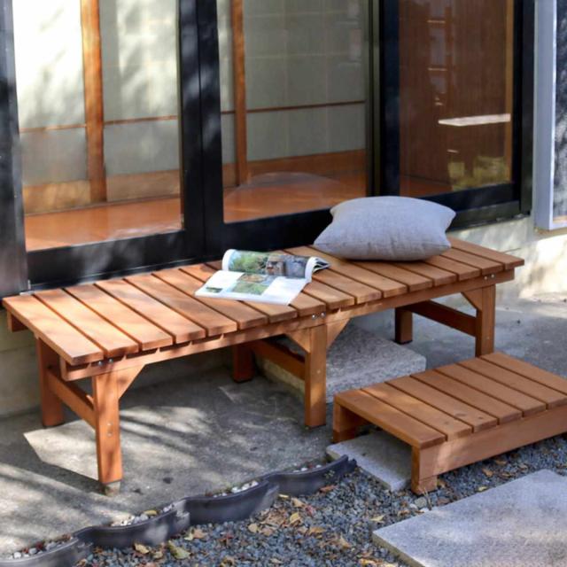 縁台ベンチ hiyori ステップセット 幅154.5×奥行55cm ( ベンチ ガーデンデッキ 木製 屋外 ウッドデッキ ウッドベンチ 庭 バルコニー 縁台 天然木 杉 庭先 ウッドチェア 踏み台 掃き出し窓 連結 ウッド デッキ おしゃれ )