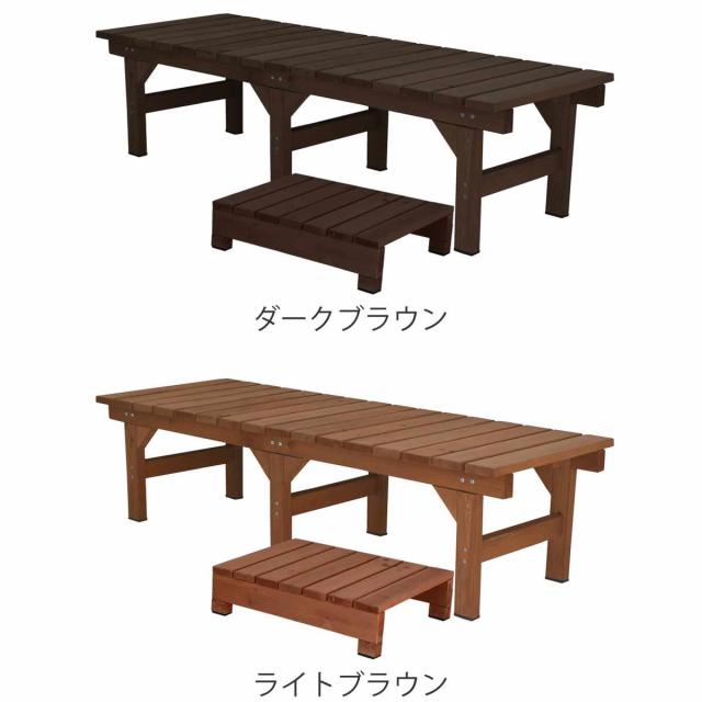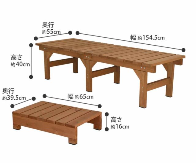 | サイズ | デッキ縁台:幅 約154.5×奥行55×高さ40cm 約13.8kg ステップ:幅 約65×奥行39.5×高さ16cm 約3.8kg |