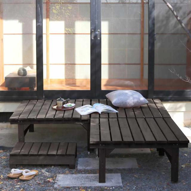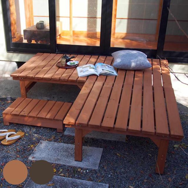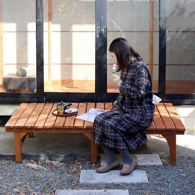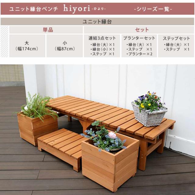 ユニット縁台ベンチ hiyori 連結3点セット 幅174.5×奥行88cm ( ガーデンデッキ ベンチ 木製 屋外 ウッドデッキ ウッドベンチ 庭 バルコニー 縁台 天然木 杉 庭先 ぬれ縁 踏み台 掃き出し窓 連結 ウッド デッキ おしゃれ )