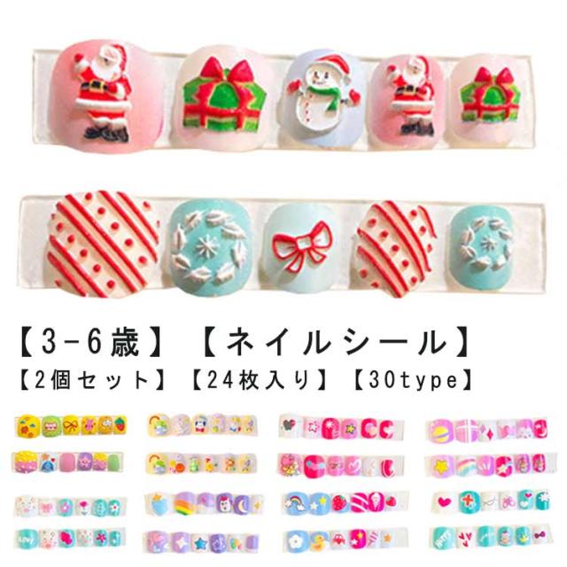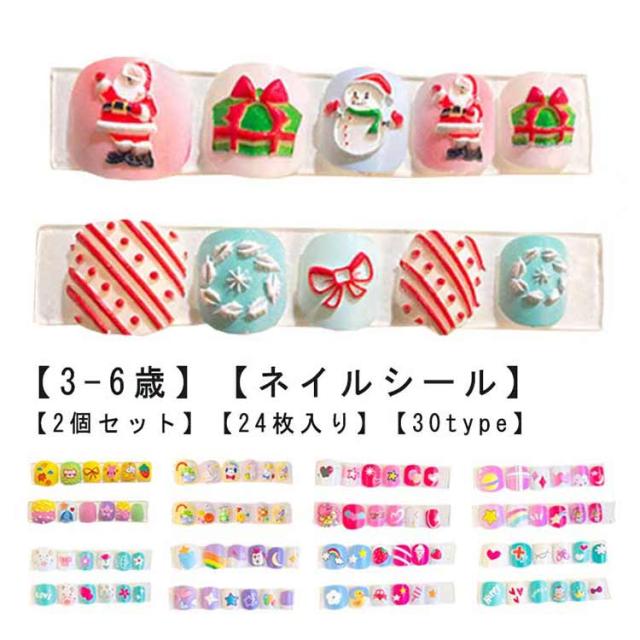 マニキュア 子供 【2個セット】24枚入り 3D ネイル アート 子供 こども 貼るだけマニキュア かわいい ステッカー キッズ 子供ネイルステッカー 選べる30種類 ギフト プレゼント 子供用ネイル メイク おもちゃ