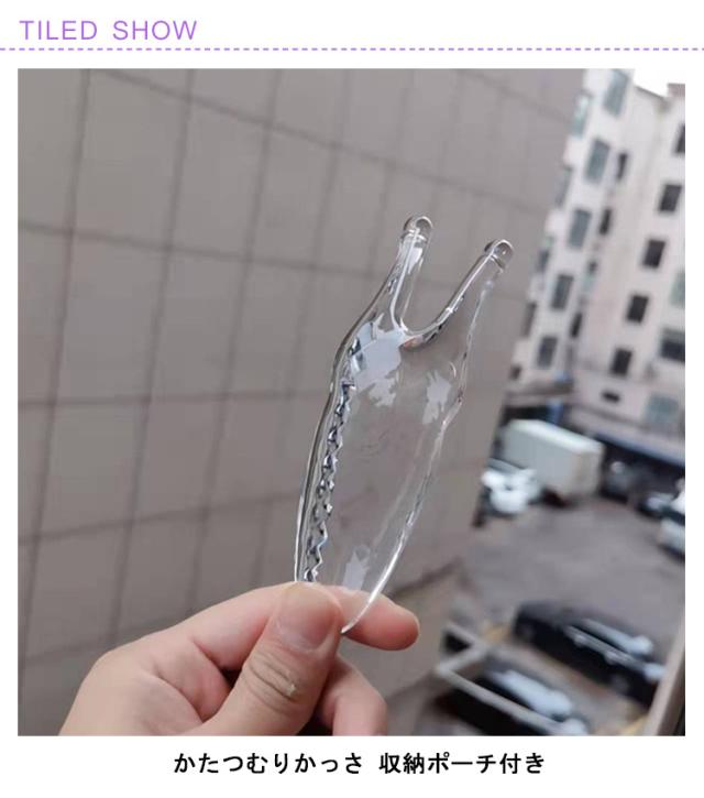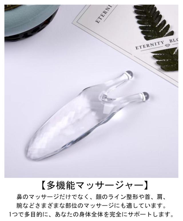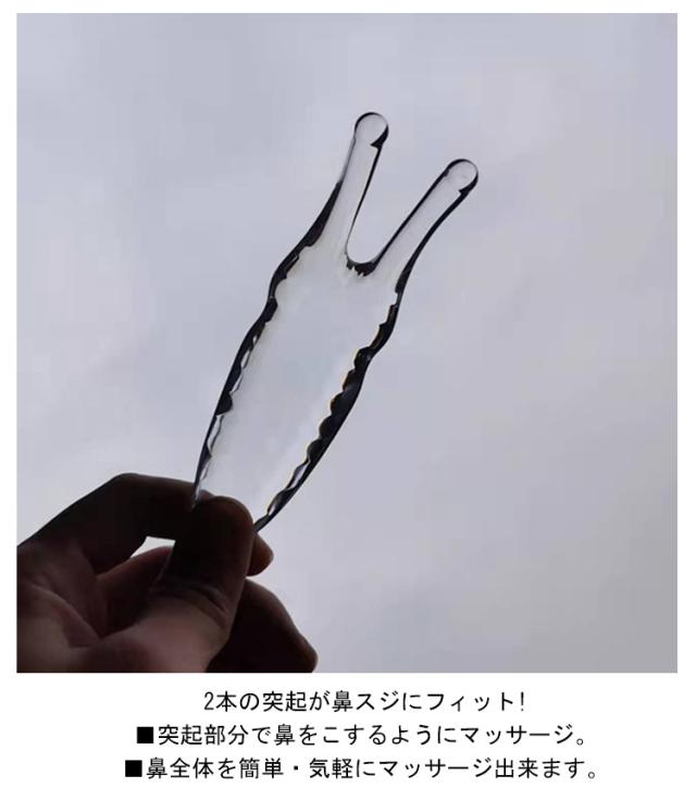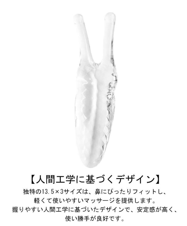 | かたつむりかっさ 収納ポーチ付き 使用方法:2本の突起 でツボ押し 2本の突起が鼻スジにフィット! ■突起部分で鼻をこするようにマッサージ。 ■鼻全体を簡単・気軽にマッサージ出来ます。 【天然樹脂製造】 カタツムリ カッサは、安全で信頼性があり、有害物質が一切含まれていない天然樹脂で作られています。皮膚の健康を確保します。 【人間工学に基づくデザイン】 独特の13.5×3サイズは、鼻にぴったりフィットし、軽くて使いやすいマッサージを提供します。握りやすい人間工学に基づいたデザインで、安定感が高く、使い勝手が良好です。 【多機能マッサージャー】 鼻のマッサージだけでなく、顔のライン整形や首、肩、腕などさまざまな部位のマッサージにも適しています。1つで多目的に、あなたの身体全体を完全にサポートします。 【完璧なマッサージ効果】 2つの突起が、完璧にマッサージの効果を模倣し、疲労を緩和し、血液循環を促進します。カタツムリ カッサは、あなたに新しい快適な体験をもたらします。 軽量で扱いやすく 日々のケアに最適! クリスタルクリアの見た目もキレイで、使う事が楽しくなると思います。 是非、実際に手で触れ試してみて下さい。 | |