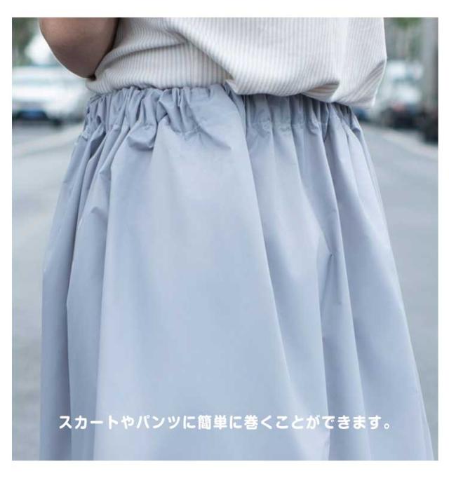| 雨の日の通勤・通学時に活躍。ウエストゴムで着脱しやすいレイン巻きスカート。 撥水、防水加工を施したレインボトムスカバーです。 スカートやパンツに簡単に巻くことができます。 面ファスナーで閉じるので、裾の広がりを気にせずプレーできます。 洋服の上からサッと装着できるので学生さんやアウトドアシーンにオススメ。 シンプルなデザインなので女性だけでなく、男性の方もユニセックスでお使いいただけます。 | |