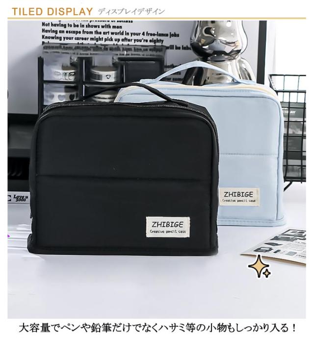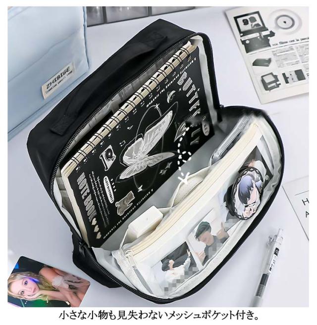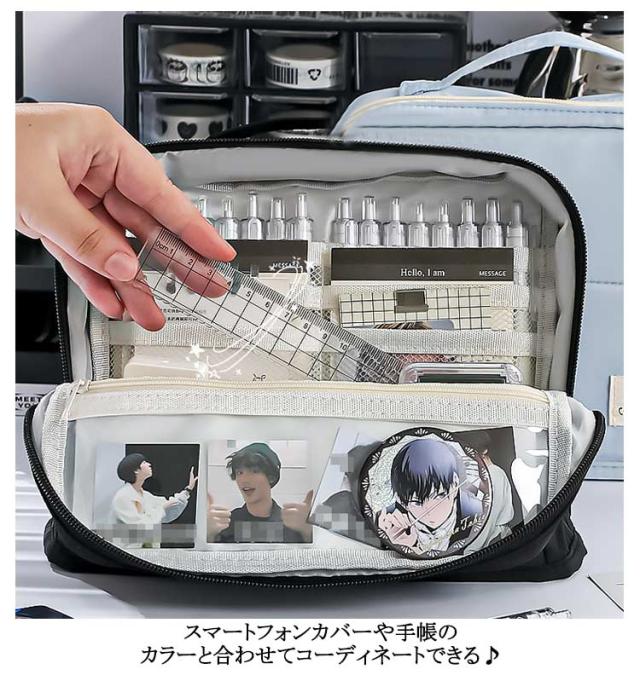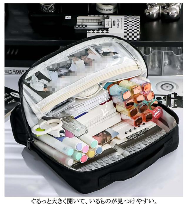 | 大人になってからも使えるシンプルなデザイン! 大容量でペンや鉛筆だけでなくハサミ等の小物もしっかり入る! 小さな小物も見失わないメッシュポケット付き。 ぐるっと大きく開いて、いるものが見つけやすい。 持ち運び便利なハンドル付き スマートフォンカバーや手帳のカラーと合わせてコーディネートできる♪ | |