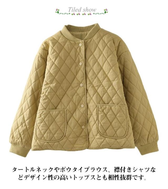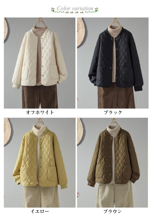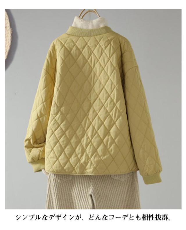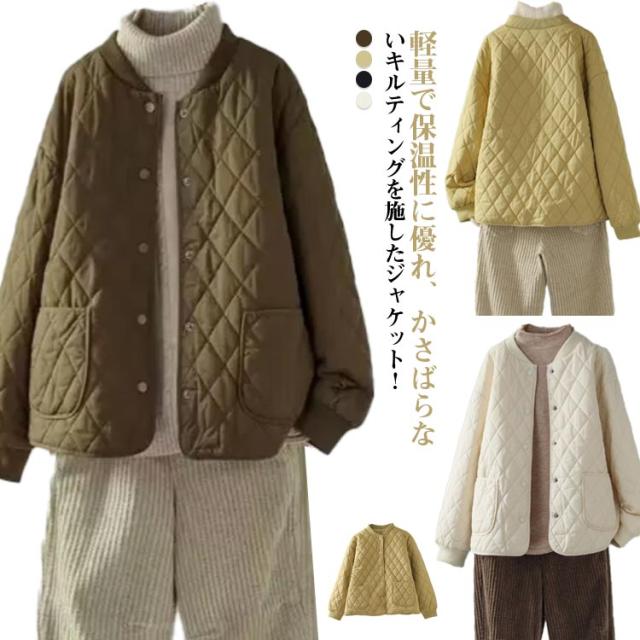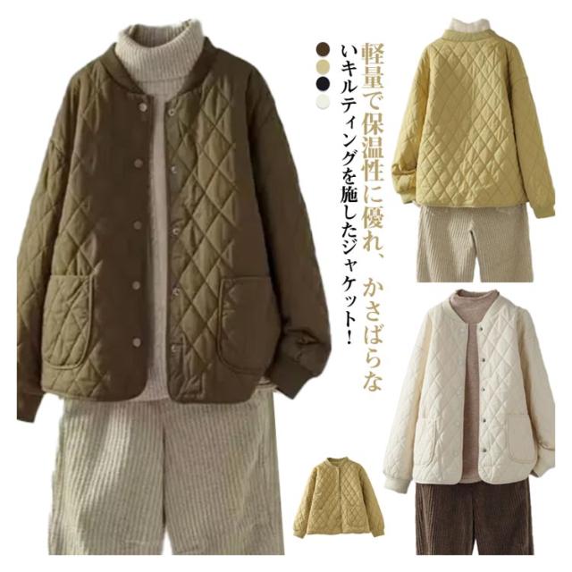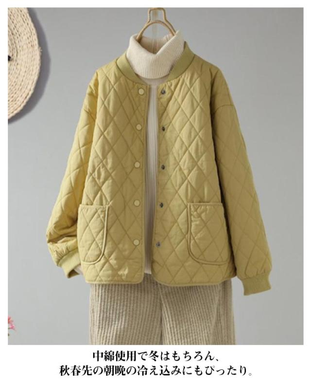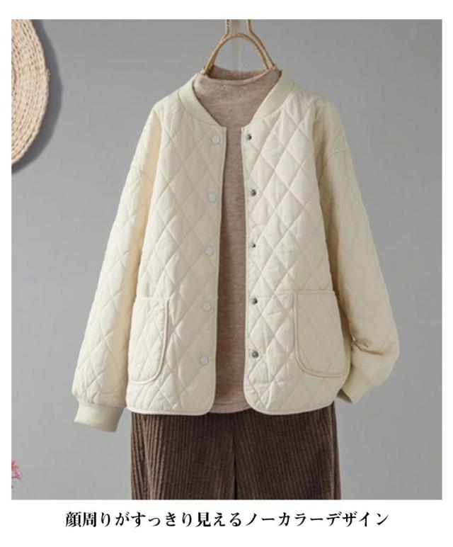 キルティングジャケット 中綿 レディース ノーカラージャケット ブルゾン 秋冬 ノーカラー キルティングジャケット コート 羽織り 秋冬 アウター あったか 暖かい ゆったり 大人 カジュアル