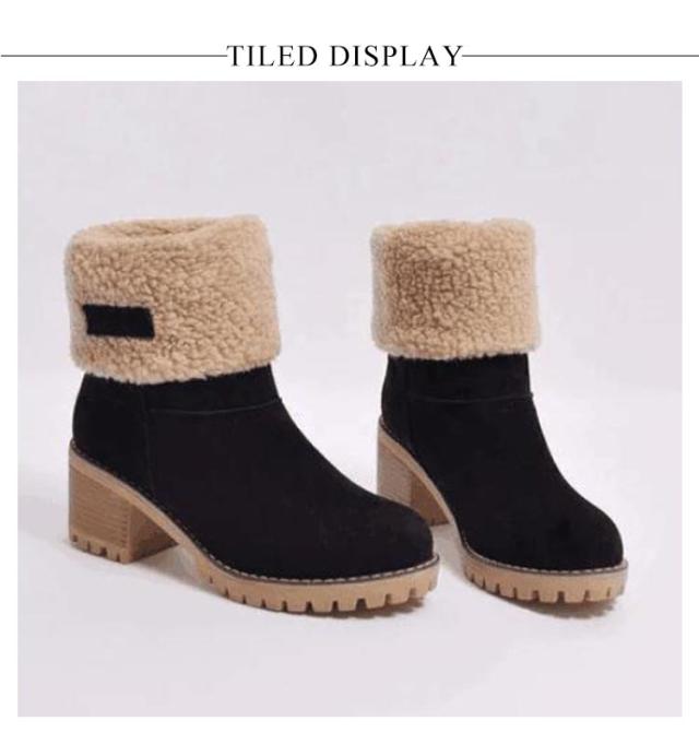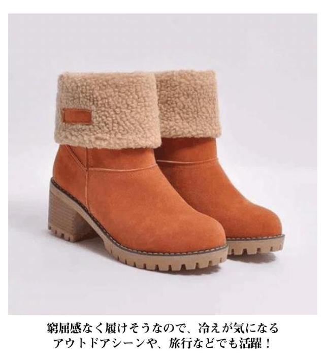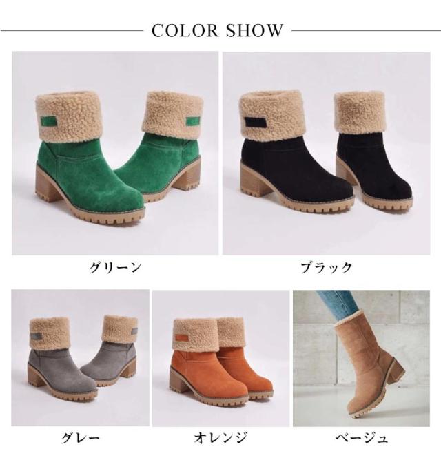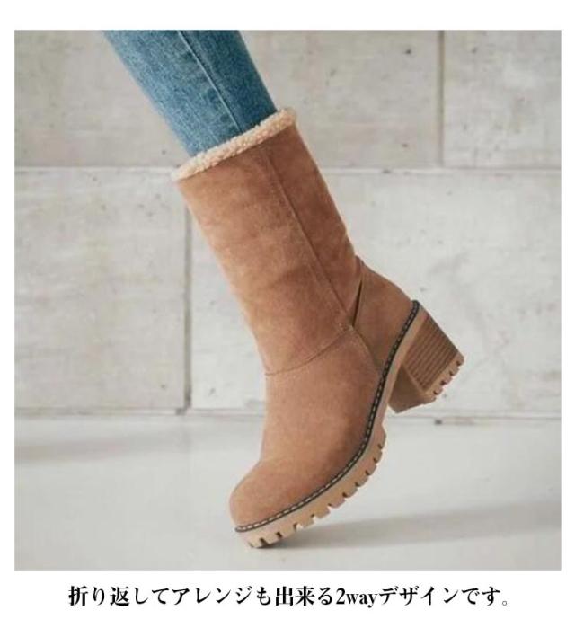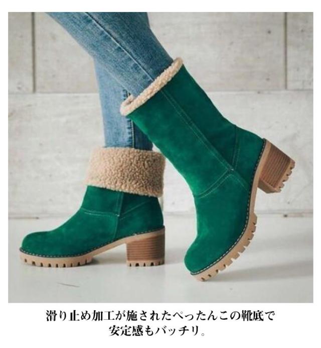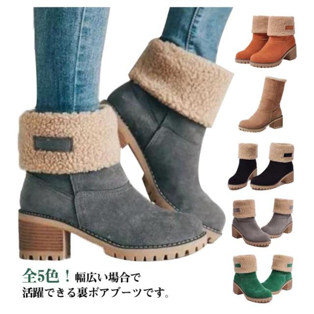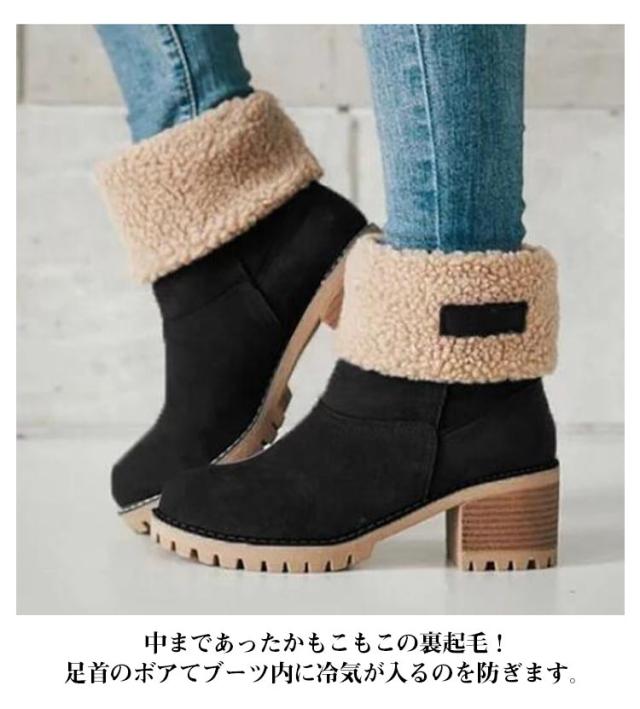 通勤 ミドルブーツ 裏ボア ショートブーツ ボアブーツ 履きやすい ファーシューズ もこもこ あったか ボア スエード 裏ボア 黒 カジュアル ムートンブーツ 裏起毛 冬 美脚 美脚 婦人靴 通学 防寒 母の日 大きいサイズ カジュアル 太めヒール